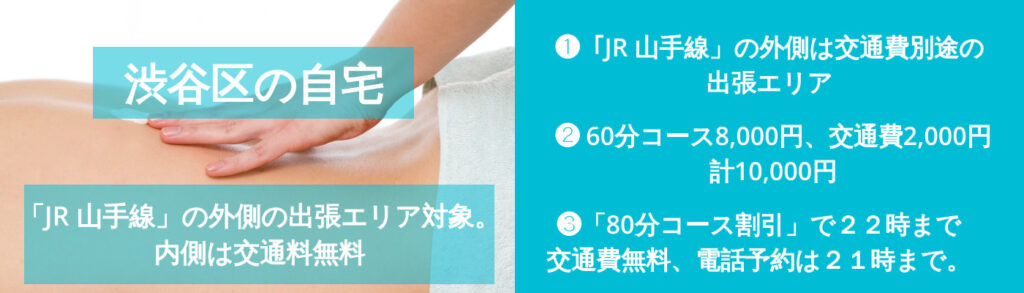 当店の出張マッサージの、出張エリアの中で、「渋谷区の自宅:交通費別途」について紹介しています。