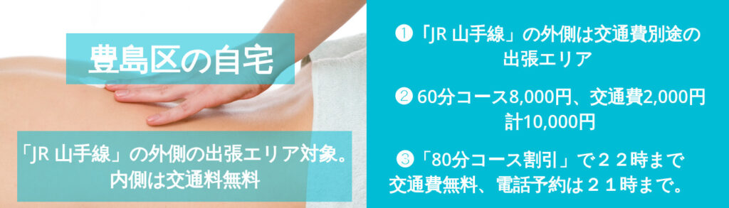 当店の出張マッサージの、出張エリアの中で、「豊島区の自宅:交通費別途」について紹介しています。